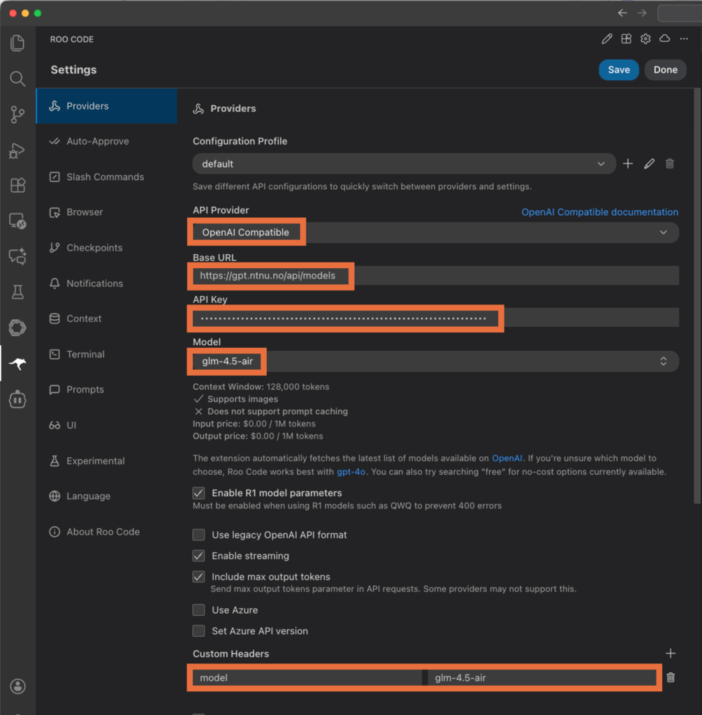 Roo Code configuration: